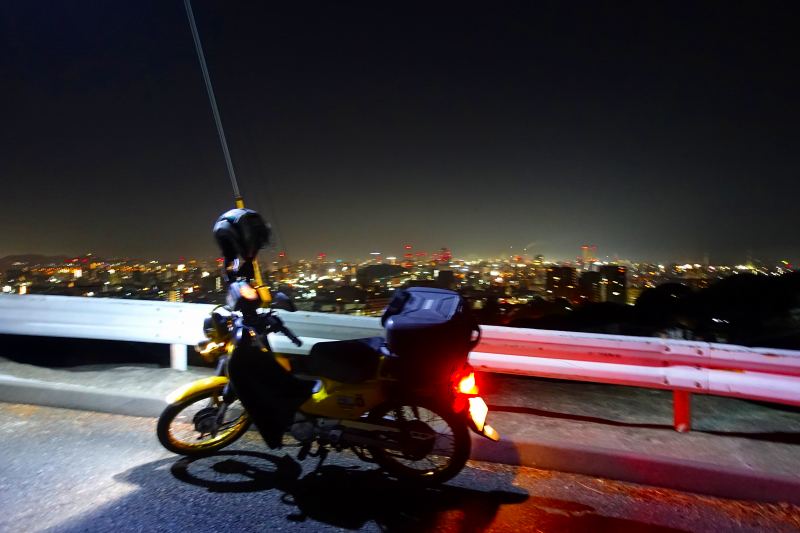 朝と言っても午前6時はまだ真っ暗、そんな砲台山の上に三日月^^