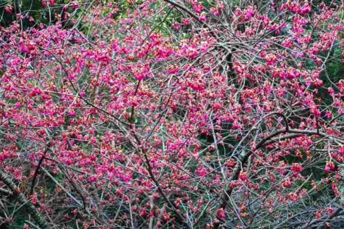 足立山麓の植物たちも梅や河津桜、杏子に寒緋桜そして黄梅の花も開き始め山の彩も賑やかになって来ました。