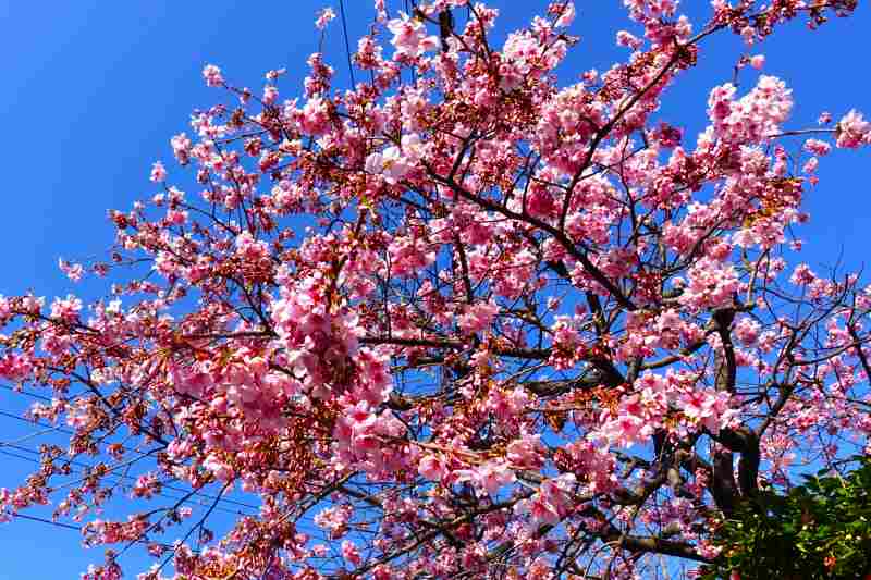 今年は少し開花が遅れていたセブンイレブン横の河津桜が満開です。