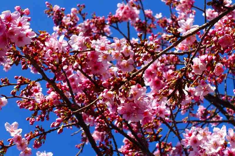 妙見公園の河津桜は今がほぼ満開です♪ 色が濃くて綺麗な桜ですよね^^