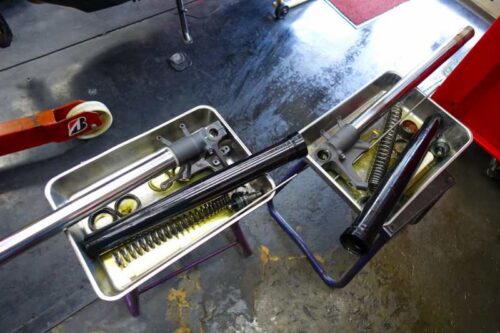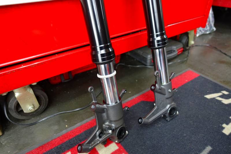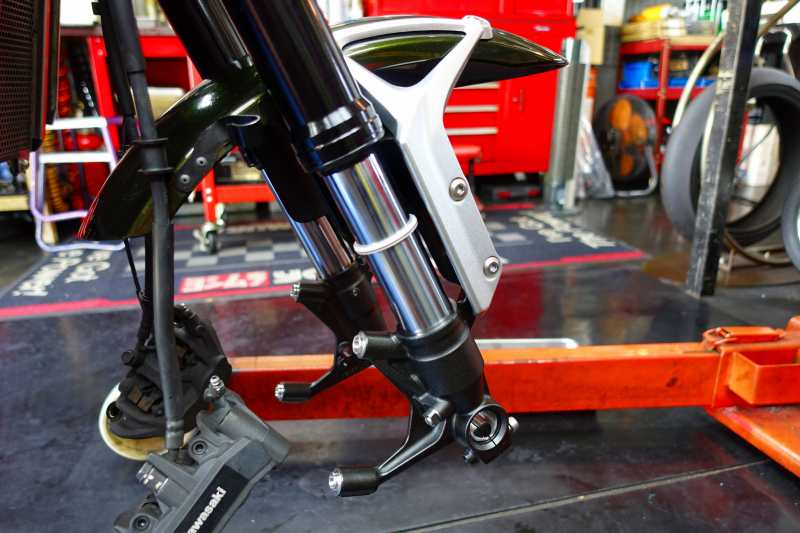 Z900RSのお客様、フロントフォ-クから若干お漏らし、なのでこの際健脚施工という事でチェックイン。