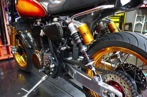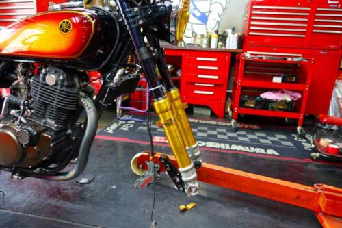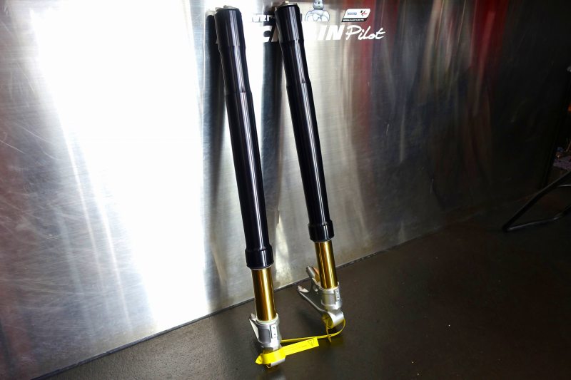 今回のチェックインはOHLINS正立フロントフォ-クの再健脚&リアOHLINSのメンテナンスです。