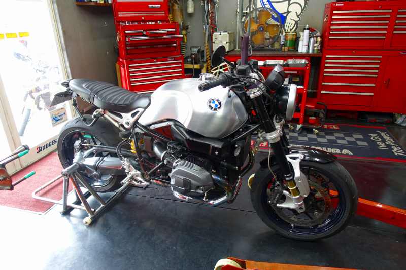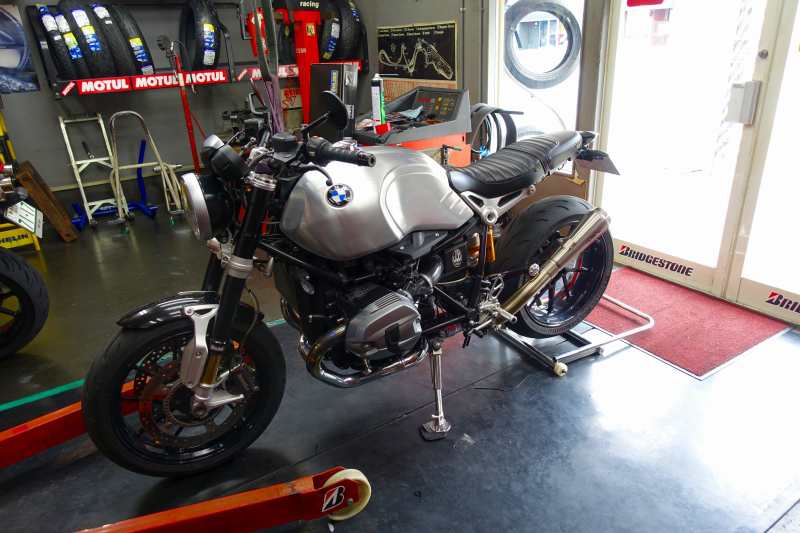 そんなこんなでRnineTにFGRT216装着。無論フォ-クの取り付け寸法調整とセットアップを実施。
