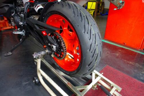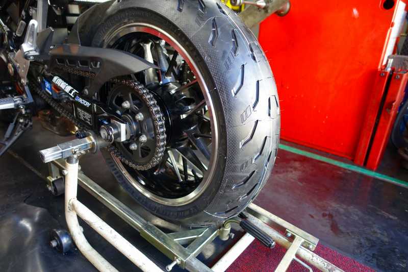でもって屋久島ツ-リングを念頭に置いたタイヤ交換とサスペンションセッティングをお受けしました。