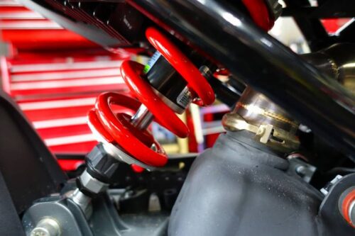 リアは最近よく耳にするようになったYSS製が装着されています。実は当店も正式に取り扱いを始めました。