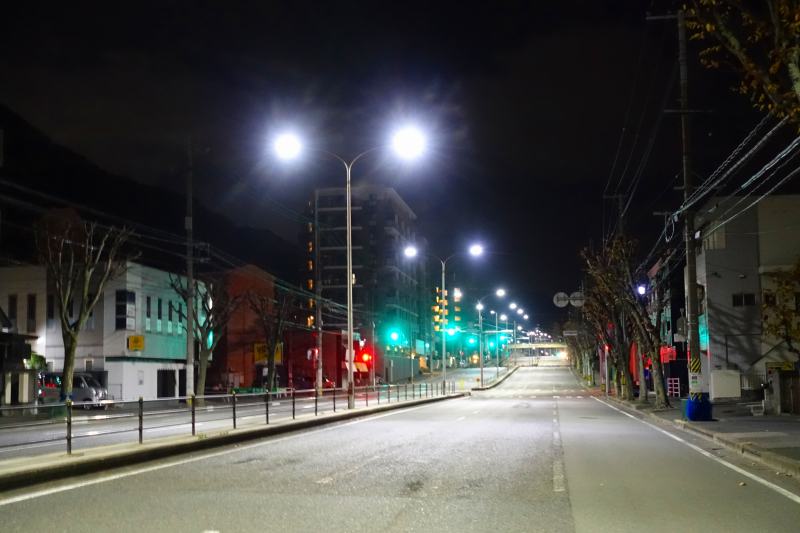 何時もの朝トレコ-ス、行きはまだ真っ暗です。早朝というよりまだ夜ですが・・・夜景は綺麗ですけど。