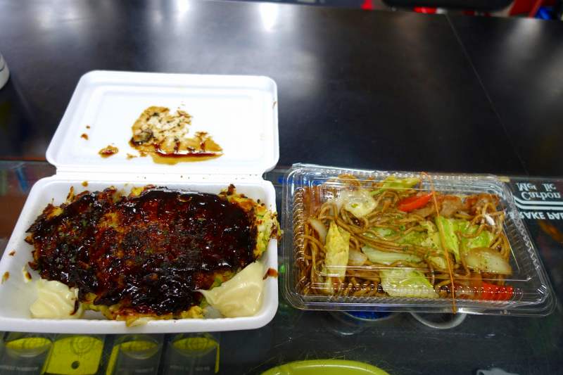 回転焼き(六法焼き)もあるし夏場はソフトクリ-ムも有りますよ~。お好み焼きと焼きそばで700円程度。