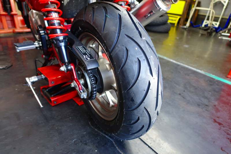 元々18inchでタイヤサイズ160/60ZR18ですがMT5.0×17でタイヤサイズは170/60ZR17に変更されています。