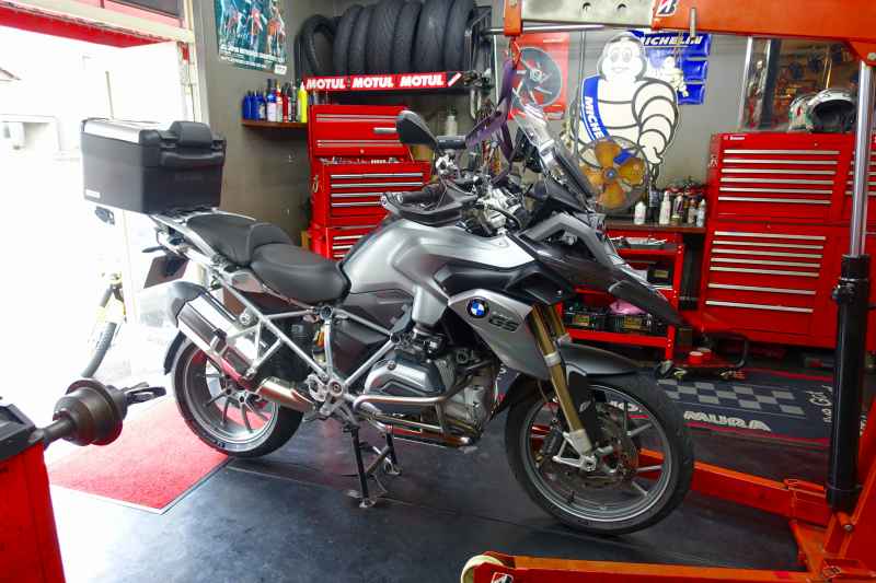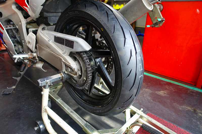 ところで数年前リアのOHLINSのO/Hと前後タイヤの交換をしましたが今回はフロントの再健脚と前後ROAD5の再装着。