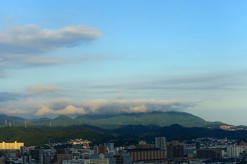 今朝の皿倉山も良い感じに雲を被ってますね~、山頂はホワイトアウト状態でしょうね。
