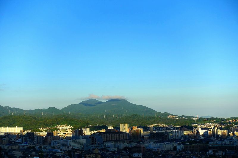 今日の皿倉山の雲の帽子は小さめですね。雲は皿倉山山頂だけの青い夏空と皿倉山、絵に成りますねえ~(^^)