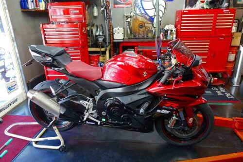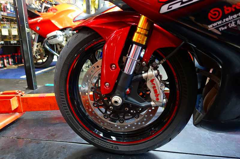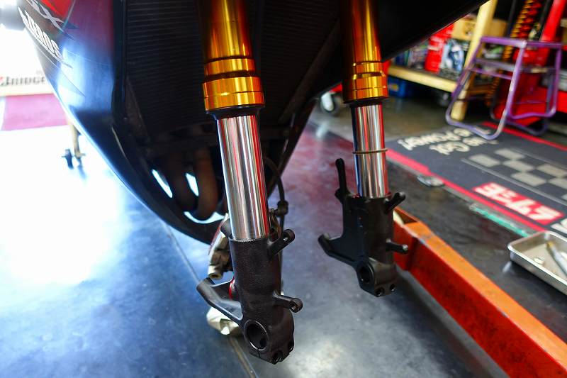 以前インナ-チュ-ブの打痕を修正したGSX-R750ですがお客様にも説明させて頂いた・・・もしかすると漏れるかもって心配していましたが残念ながらオイル滲みが確認できます。