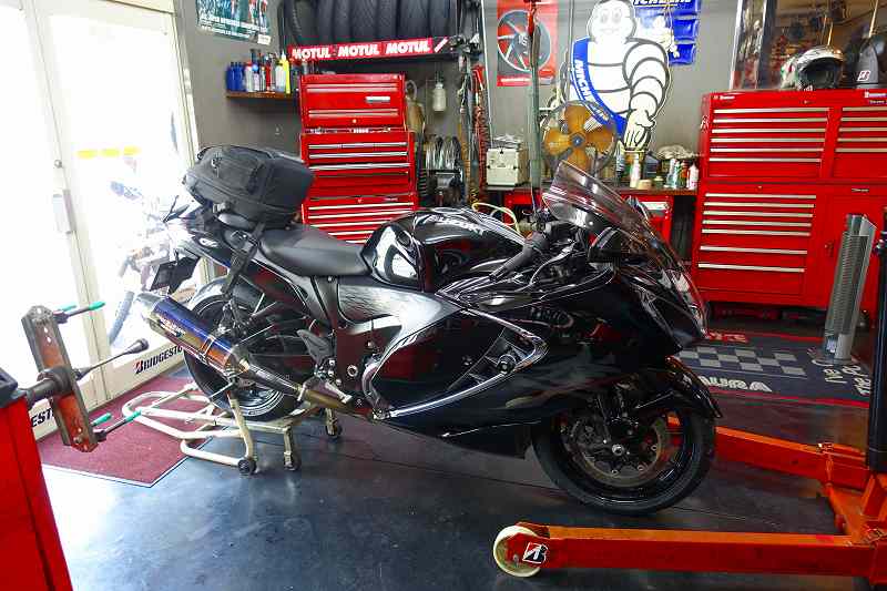 ところでGSX1300Rの後期型から現行モデルは後輪の脱着にリアブレ-キキャリパ-を半解する必要があります。