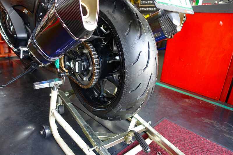 IWAKI仕様のZ1、相変わらずタイヤの磨耗が激ヤバですよね~(^^; 今回もK300を再装着。