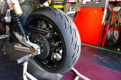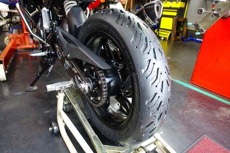 ZRX1200Sのお客様、前回のタイヤ交換時にROAD5が欠品していてPOWER5を装着。