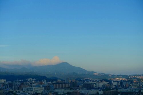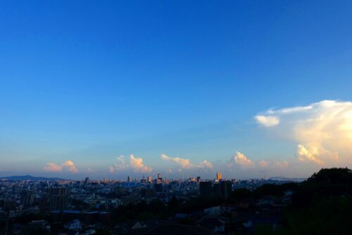 平和公園方面に向かい黒原階段250段を登り切って展望所に着くころは空もすっかり明るくなります。