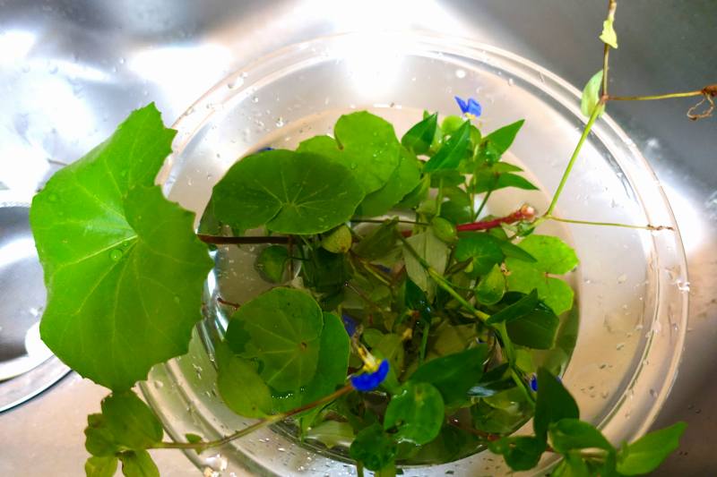 ところで昨日は何時もの朝トレコ-ス沿いでツユクサとツワブキを摘みました。