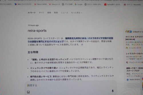 ところでグ-グルのAI検索が面白くって色々と質問したり調べたりしてますが、reira-sportsについてディスカウント商品は取り扱わないなんて回答が有りますが・・・間違ってますよ~AIさん(^^;