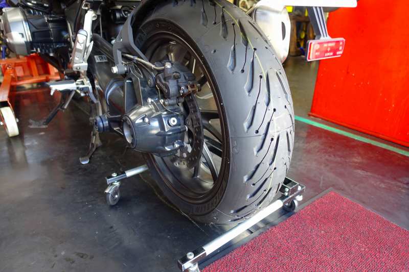 前回フロントフォ-クの健脚を施工したお客様、今回は前後タイヤ交換です。