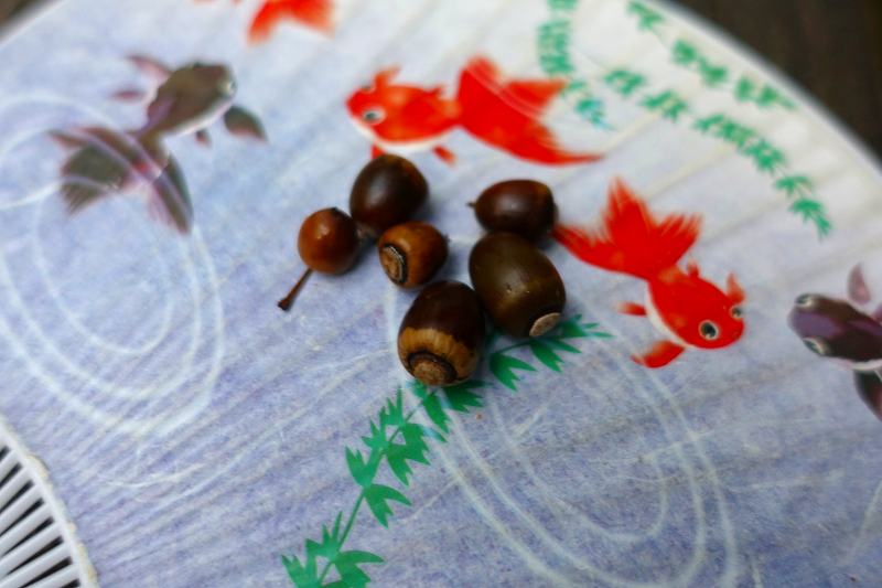 道端には椎の実などのどんぐりが落ちていてム-ドは完全に秋、ただ違っているのは気温ですかね~。