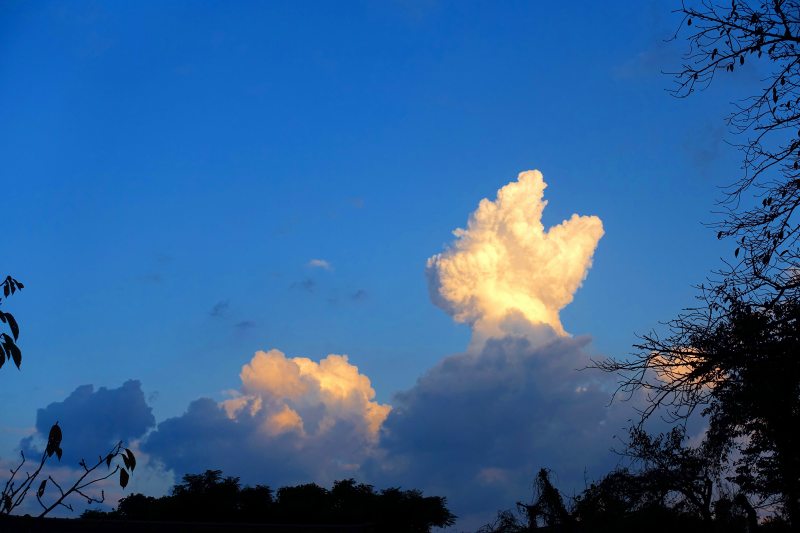 明け方はジャンジャン降りだったのに嘘の様に晴れましたね~、何だか夏の名残のような雲がそびえてます^^