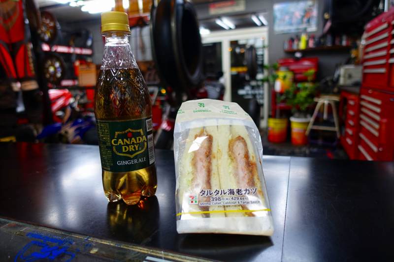 ところで今日の朝ご飯は気分を変えて海老カツサンドとジンジャ-エ-ル^^