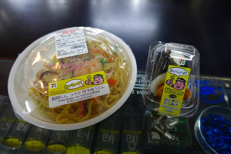でもって陳列棚を見てみると「おっ!」福岡くんとのコラボレ-ションした博多皿うどんとおにぎりが^^