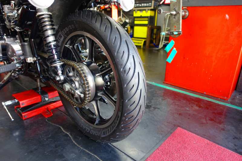 Iwaki仕様のKawasaki Z1、これまで当時のム-ドを優先したいという事からK300を選択してこられましたがZ系のお仲間からMICHLINのROADクラッシックに履き替えたら色々改善するぜぇ的な事を聞いて今回K300離脱。