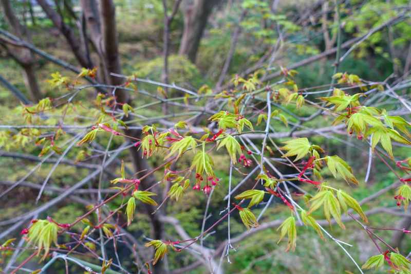 何時もの朝トレコ-ス沿いの紅葉谷、若葉が出てきましたね~♪ 可愛いですよね!