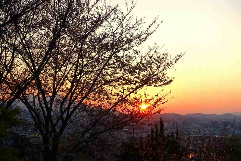 夕日に映える葉桜も良きかな^^ 残念ながら毎日の自宅花見も終焉の時を迎えようとしております。