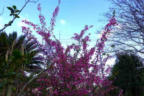 ソメイヨシノも満開ですが足立山麓の所々にハナカイドウの木もあり鮮やかなピンクの花を咲かせています。