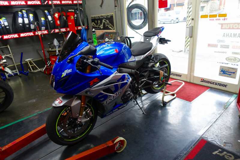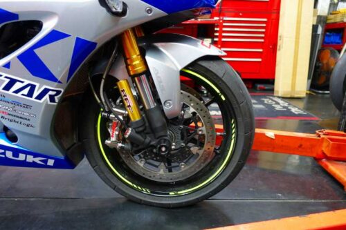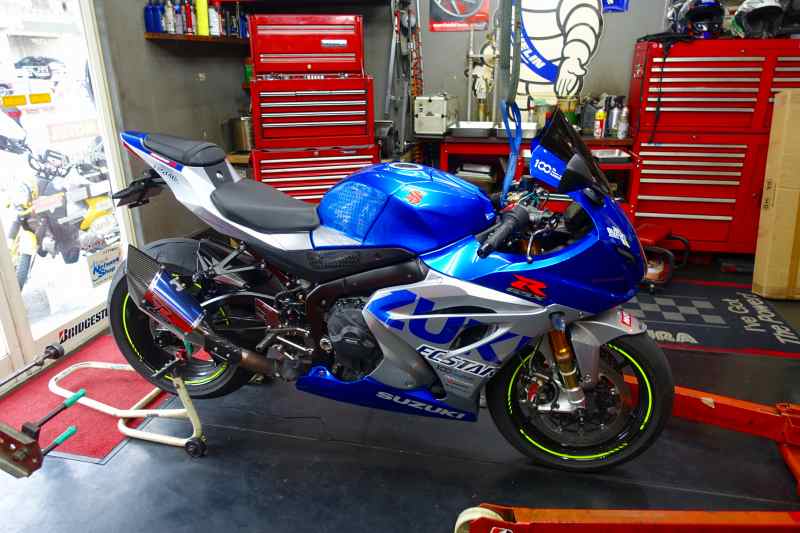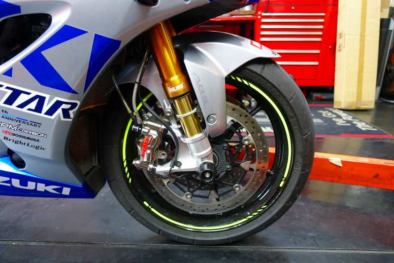 GSX-R1000の健脚です。SHOWAのBFFからOHLIN FGR244に交換です。BFFは高価な純正フォ-クでSUZUKIのディ-ラ-さんでは基本的にO/Hは出来ないとの事。SHOWAの認定ショップ等が対応しているとか何とか・・・。