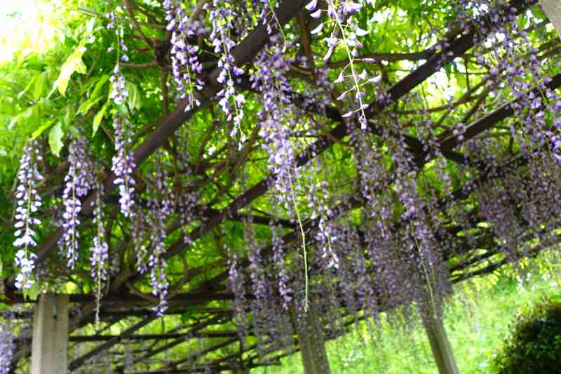 妙見神社境内の藤棚に花が下がりましたね~、去年は全く花が咲いていませんでしたが何故でしょう?