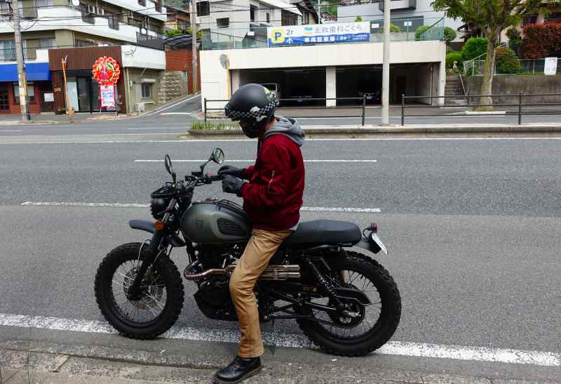 暫くぶりにタイヤのご注文でご来店の常連様、なんとMVアグスタブルタ-レから見たことの無いスクランプ-に乗り換えられていました。流石に適応するタイヤの在庫はございません(^^;